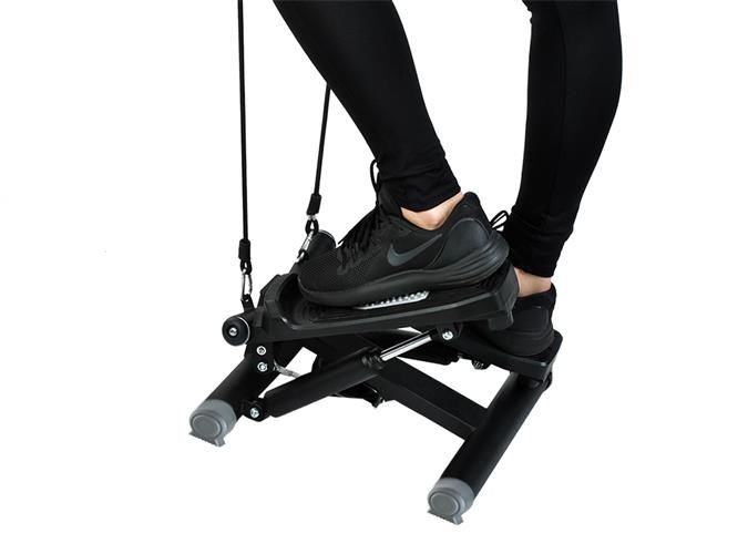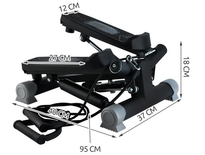 Az aktív lépcsőző edzés nem csak a lábizmokat és a feneket erősíti, hanem javítja az általános állóképességet is. A kötelekkel ellátott csavaró lépcső segítségével könnyebben diverzifikálhatják a napi edzéseket vagy elindíthatják az egészséges sportrutint. Jól működik az edzőteremben és otthon is. Nem sok helyet foglal el, de intenzív edzéseket tesz lehetővé. Az átlátszó LCD kijelzőnek 4 megfigyelési funkciója van. Megszámolja az ismétléseket, a testmozgás idejét és az elégetett kalóriákat, valamint az percenkénti átlagos ismétléseket, ami lehetővé teszi a testmozgásban részt vevő személy számára, hogy a megfelelő ütemben maradjon. Ezenkívül a fogantyúval felszerelt kötelek lehetővé teszik a karok egyidejű edzését. A teljes edzőkészlet nemcsak a lábak és a karok fejlődését garantálja, hanem az egész testet is azáltal, hogy álló helyzetben összegyűjti a testmozgásokat és aktiválja a test más részein található izmokat. Az edzőgép állítható lépcsőmagassággal rendelkezik, ami befolyásolja az edzés nehézségét. A kezdők ezért olyan beállítást használhatnak, amely kevesebb erőfeszítést tesz lehetővé, és a haladó felhasználók növelhetik a lépések magasságát, ami fokozza az edzést. Ezenkívül az átlósan mozgó lépéseknek köszönhetően a teljes edzés még hatékonyabb. A lépcső tartós szerkezete és a speciális, csúszásmentes lábak lehetővé teszik a dinamikus mozgást, az alján kiszélesített gumi lábak garantálják a biztonságot és a stabilitást. A készlet karbantartókészletet is tartalmaz: két kéziszerszám és egy kenőanyag.